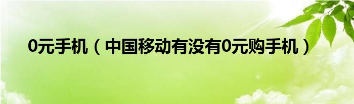 1,中国移动有没有0元购手机?:中国移动有0元购手机,不同地区政策不同0元购机指办理预存话费送手机的合约计划,也叫“预存话费送手机”。和移动签订购机合约,预存一定额度话费并选择相应的套餐,可享受全额补贴购买合约手机,而购机款为零元,即为0元购机。属临时性活动,建议以当时的活动规定为准。具体以10086实时咨询为准。