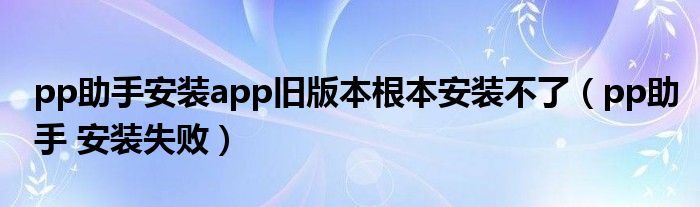大家好,慧慧来为大家解答以上问题,pp助手安装app旧版本根本安装不了,pp助手 安装失败很多人还不知道,现在让我们一起来看看吧!
