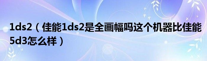 1,佳能1ds2是全画幅吗这个机器比佳能5d3怎么样:是所谓的全画幅,也就是135画幅!手感,机械结构,用料肯定比5D3好,对焦我不确定,感光元件不如5D3(高感,摄像),电子功能上也应该比5D3差。如果你要买还是5d3合适,毕竟现在1DS2没有新机,感光元件这东西是会耗损的,买二手不合适!