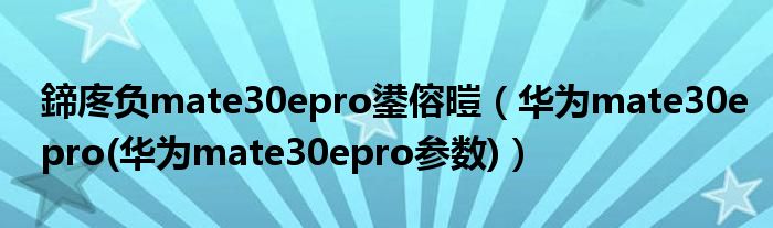 大家好,小常来为大家解答以上问题。鍗庝负mate30epro鍙傛暟,华为mate30epro(华为mate30epro参数)很多人还不知道,现在让我们一起来看看吧!