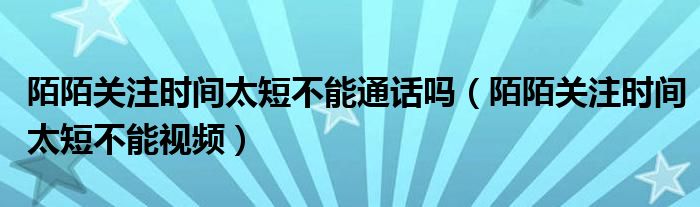 大家好,跳跳为你解答以上问题。陌陌关注时间太短不能通话吗,陌陌关注时间太短不能视频这个问题很多人还不知道,现在让我们一起来看看吧!