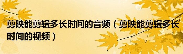 大家好,跳跳为你解答以上问题。剪映能剪辑多长时间的音频,剪映能剪辑多长时间的视频这个问题很多人还不知道,现在让我们一起来看看吧!