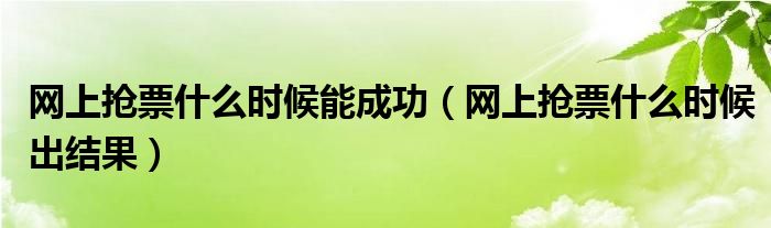 大家好,跳跳为你解答以上问题。网上抢票什么时候能成功,网上抢票什么时候出结果这个问题很多人还不知道,现在让我们一起来看看吧!
