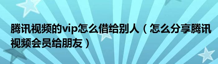 大家好,跳跳为你解答以上问题。腾讯视频的vip怎么借给别人,怎么分享腾讯视频会员给朋友这个问题很多人还不知道,现在让我们一起来看看吧!