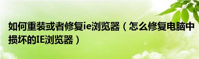 大家好,小太来为大家解答以上问题。如何重装或者修复ie浏览器,怎么修复电脑中损坏的IE浏览器很多人还不知道,现在让我们一起来看看吧!