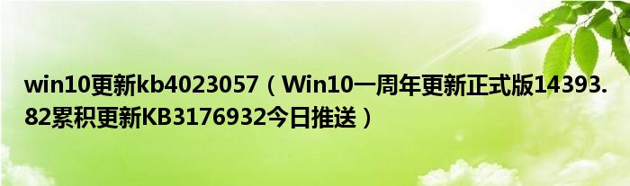 大家好,小太来为大家解答以上问题。win10更新kb4023057,Win10一周年更新正式版14393.82累积更新KB3176932今日推送很多人还不知道,现在让我们一起来看看吧!