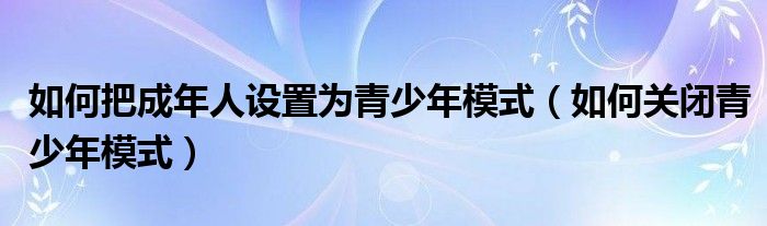 如何把成年人设置为青少年模式(如何关闭青少年模式)