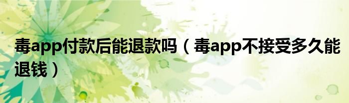 大家好,跳跳为你解答以上问题。毒app付款后能退款吗,毒app不接受多久能退钱这个问题很多人还不知道,现在让我们一起来看看吧!