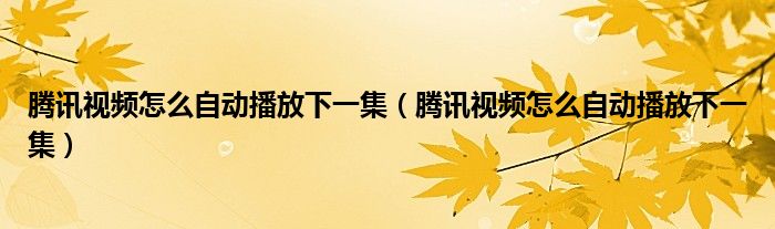 大家好,跳跳为你解答以上问题。腾讯视频怎么自动播放下一集,腾讯视频怎么自动播放下一集这个问题很多人还不知道,现在让我们一起来看看吧!