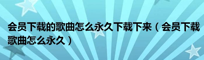 大家好,跳跳为你解答以上问题。会员下载的歌曲怎么永久下载下来,会员下载歌曲怎么永久这个问题很多人还不知道,现在让我们一起来看看吧!