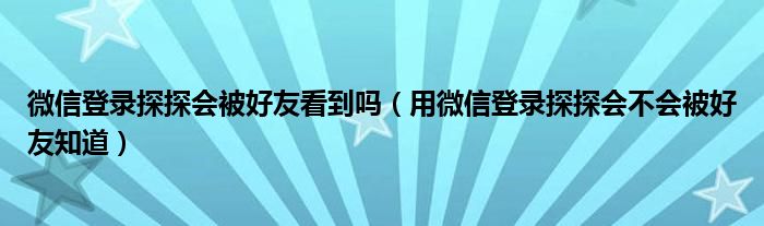 大家好,跳跳为你解答以上问题。微信登录探探会被好友看到吗,用微信登录探探会不会被好友知道这个问题很多人还不知道,现在让我们一起来看看吧!