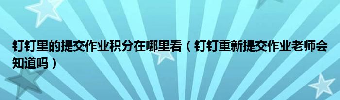 大家好,跳跳为你解答以上问题。钉钉里的提交作业积分在哪里看,钉钉重新提交作业老师会知道吗这个问题很多人还不知道,现在让我们一起来看看吧!
