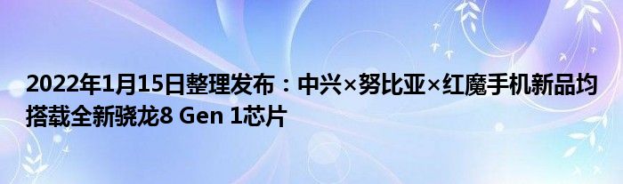 2022年1月15日整理发布:在高通发布骁龙8 Gen 1芯片之后,中兴手机当天就宣布将会“三箭齐发”,中兴×努比亚×红魔手机新品均搭载全新骁龙8 Gen 1芯片。