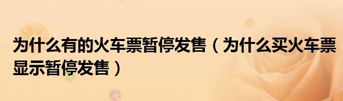 大家好,跳跳为你解答以上问题。为什么有的火车票暂停发售,为什么买火车票显示暂停发售这个问题很多人还不知道,现在让我们一起来看看吧!
