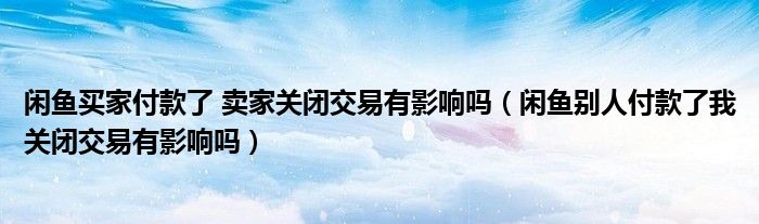 大家好,跳跳为你解答以上问题。闲鱼买家付款了 卖家关闭交易有影响吗,闲鱼别人付款了我关闭交易有影响吗这个问题很多人还不知道,现在让我们一起来看看吧!