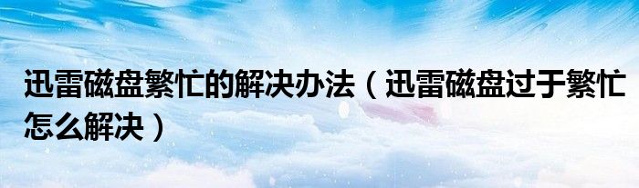 大家好,跳跳为你解答以上问题。迅雷磁盘繁忙的解决办法,迅雷磁盘过于繁忙怎么解决这个问题很多人还不知道,现在让我们一起来看看吧!