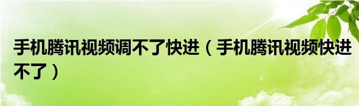 大家好,跳跳为你解答以上问题。手机腾讯视频调不了快进,手机腾讯视频快进不了这个问题很多人还不知道,现在让我们一起来看看吧!