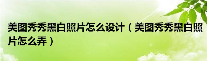大家好,跳跳为你解答以上问题。美图秀秀黑白照片怎么设计,美图秀秀黑白照片怎么弄这个问题很多人还不知道,现在让我们一起来看看吧!