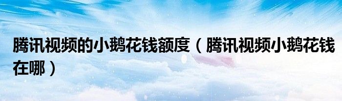大家好,跳跳为你解答以上问题。腾讯视频的小鹅花钱额度,腾讯视频小鹅花钱在哪这个问题很多人还不知道,现在让我们一起来看看吧!