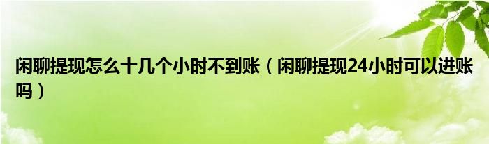 大家好,跳跳为你解答以上问题。闲聊提现怎么十几个小时不到账,闲聊提现24小时可以进账吗这个问题很多人还不知道,现在让我们一起来看看吧!
