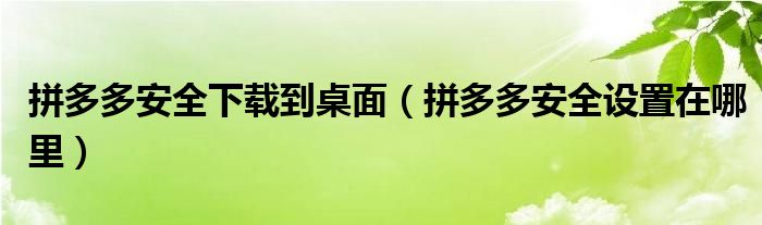 大家好,跳跳为你解答以上问题。拼多多安全下载到桌面,拼多多安全设置在哪里这个问题很多人还不知道,现在让我们一起来看看吧!