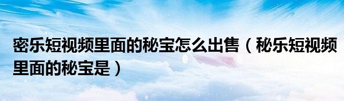 大家好,跳跳为你解答以上问题。密乐短视频里面的秘宝怎么出售,秘乐短视频里面的秘宝是这个问题很多人还不知道,现在让我们一起来看看吧!