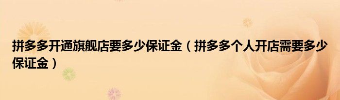 大家好,跳跳为你解答以上问题。拼多多开通旗舰店要多少保证金,拼多多个人开店需要多少保证金这个问题很多人还不知道,现在让我们一起来看看吧!