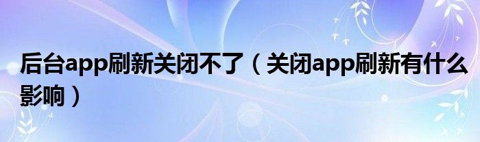 大家好,跳跳为你解答以上问题。后台app刷新关闭不了,关闭app刷新有什么影响这个问题很多人还不知道,现在让我们一起来看看吧!