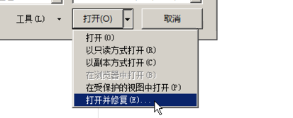 6、选中损坏文件之后,点击右下角的“打开”按钮旁边的三角形!