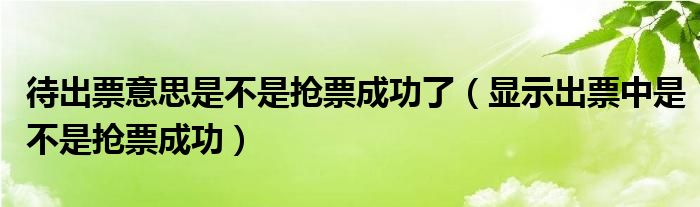 大家好,跳跳为你解答以上问题。待出票意思是不是抢票成功了,显示出票中是不是抢票成功这个问题很多人还不知道,现在让我们一起来看看吧!