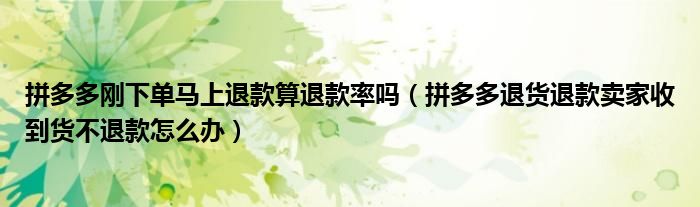大家好,跳跳为你解答以上问题。拼多多刚下单马上退款算退款率吗,拼多多退货退款卖家收到货不退款怎么办这个问题很多人还不知道,现在让我们一起来看看吧!