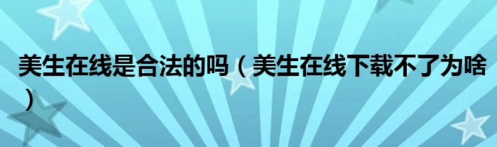 大家好,跳跳为你解答以上问题。美生在线是合法的吗,美生在线下载不了为啥这个问题很多人还不知道,现在让我们一起来看看吧!