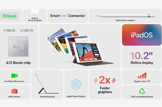 尽管如此,随着性能的提高,苹果将新iPad的价格与去年的iPad保持不变。是的,新的第8代iPad的价格为329美元,对iPad来说是一个不错的价格。毕竟,iPad确实提供了智能连接器,这意味着您几乎可以将其用于所需的一切。此外,教育客户可以299美元的价格购买。