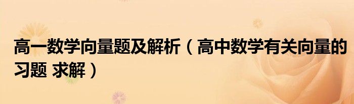 关于高一数学向量题及解析,高中数学有关向量的习题 求解这个很多人还不知道,今天菲菲来为大家解答以上的问题,现在让我们一起来看看吧!