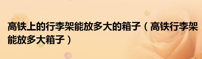 大家好,小晋来为大家解答以下问题,关于高铁上的行李架能放多大的箱子,高铁行李架能放多大箱子很多人还不知道,今天让我们一起来看看吧!