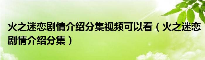 火之迷恋剧情介绍分集视频可以看(火之迷恋剧情介绍分集)