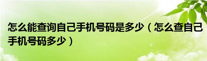 大家好,小晋来为大家解答以下问题,关于怎么能查询自己手机号码是多少,怎么查自己手机号码多少很多人还不知道,今天让我们一起来看看吧!