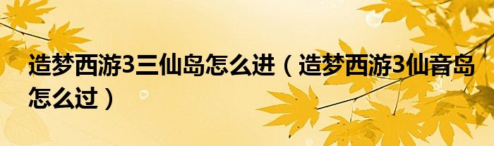 关于造梦西游3三仙岛怎么进,造梦西游3仙音岛怎么过这个很多人还不知道,今天菲菲来为大家解答以上的问题,现在让我们一起来看看吧!