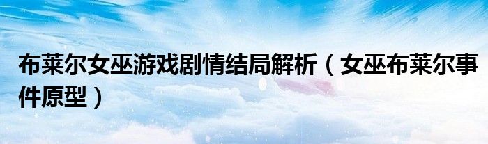 大家好,小晋来为大家解答以下问题,关于布莱尔女巫游戏剧情结局解析,女巫布莱尔事件原型很多人还不知道,今天让我们一起来看看吧!