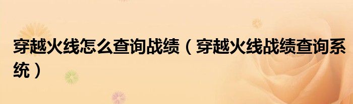 大家好,小晋来为大家解答以下问题,关于穿越火线怎么查询战绩,穿越火线战绩查询系统很多人还不知道,今天让我们一起来看看吧!