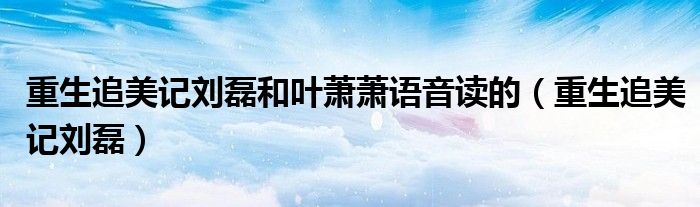 重生追美记刘磊和叶萧萧语音读的(重生追美记刘磊)