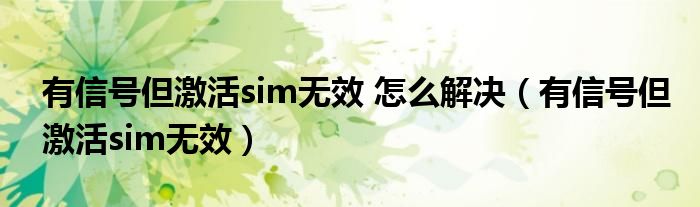 大家好,小晋来为大家解答以下问题,关于有信号但激活sim无效 怎么解决,有信号但激活sim无效很多人还不知道,今天让我们一起来看看吧!