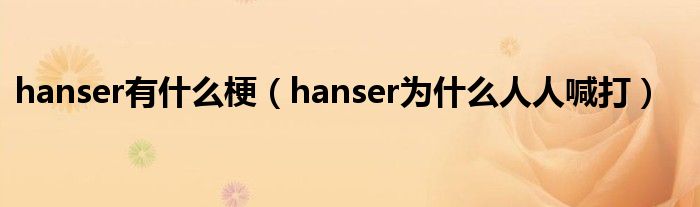 大家好,小晋来为大家解答以下问题,关于hanser有什么梗,hanser为什么人人喊打很多人还不知道,今天让我们一起来看看吧!
