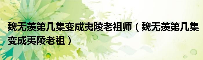 大家好,小晋来为大家解答以下问题,关于魏无羡第几集变成夷陵老祖师,魏无羡第几集变成夷陵老祖很多人还不知道,今天让我们一起来看看吧!