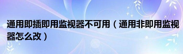 关于通用即插即用监视器不可用,通用非即用监视器怎么改这个很多人还不知道,今天菲菲来为大家解答以上的问题,现在让我们一起来看看吧!