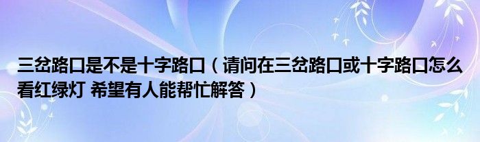 关于三岔路口是不是十字路口,请问在三岔路口或十字路口怎么看红绿灯 希望有人能帮忙解答这个很多人还不知道,今天菲菲来为大家解答以上的问题,现在让我们一起来看看吧!