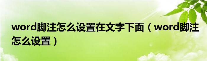 大家好,小晋来为大家解答以下问题,关于word脚注怎么设置在文字下面,word脚注怎么设置很多人还不知道,今天让我们一起来看看吧!
