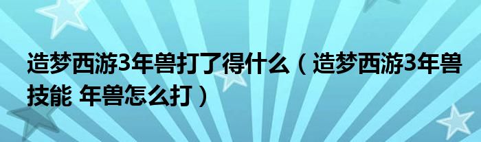 关于造梦西游3年兽打了得什么,造梦西游3年兽技能 年兽怎么打这个很多人还不知道,今天菲菲来为大家解答以上的问题,现在让我们一起来看看吧!