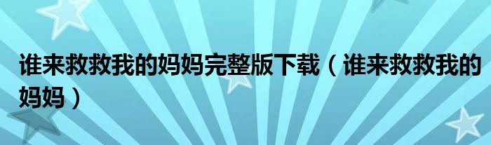 谁来救救我的妈妈完整版下载(谁来救救我的妈妈)