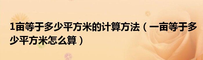 关于1亩等于多少平方米的计算方法,一亩等于多少平方米怎么算这个很多人还不知道,今天菲菲来为大家解答以上的问题,现在让我们一起来看看吧!